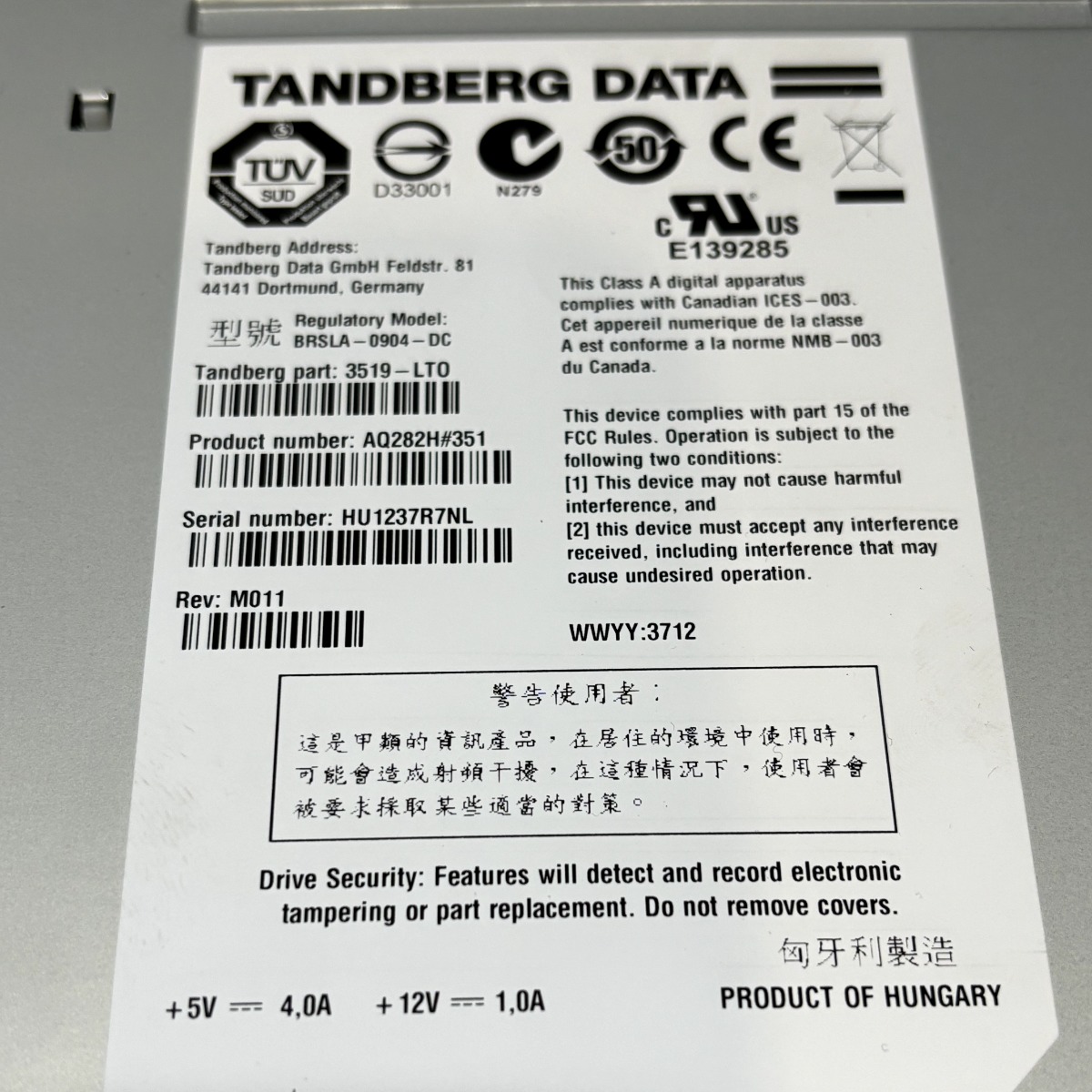 Product name | Overland Tandberg LTO Ultrium LTO 6 5 4 3 HH SAS tape drive |