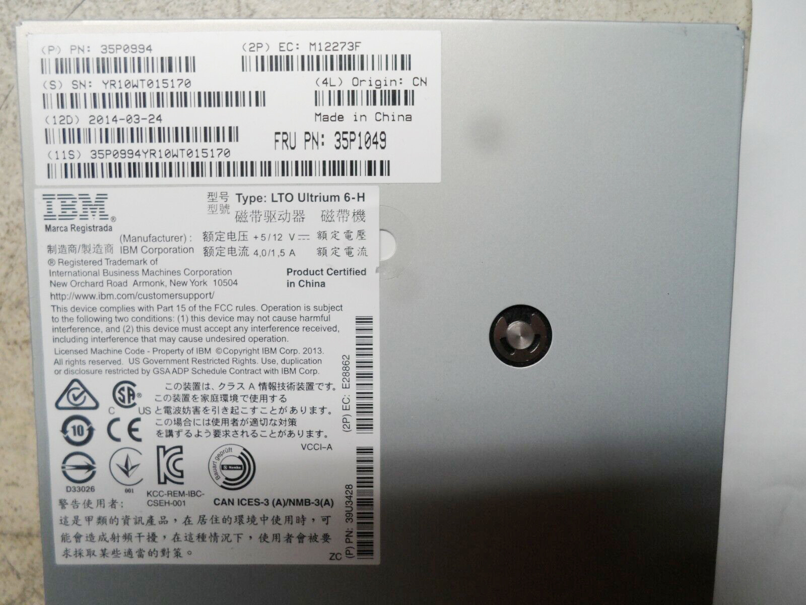 Product name | 35P0994 35P1049 39U3428 for IBM LTO6 HH SAS Internal Drive |